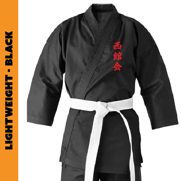 The suit is printed with the Nishikan Kanji and comes with a free white belt.